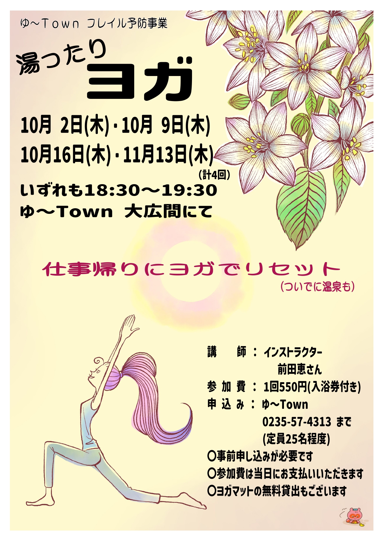 今回は、ゆ~Townの源泉ポンプ入れ替え工事にともなう臨時休業により、計4回のうち4回目が11月13日(木)に行われます。