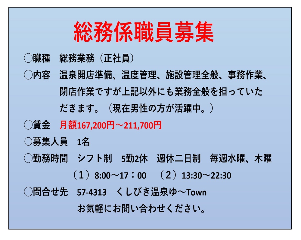 【募集終了しました】総務係職員募集しています。