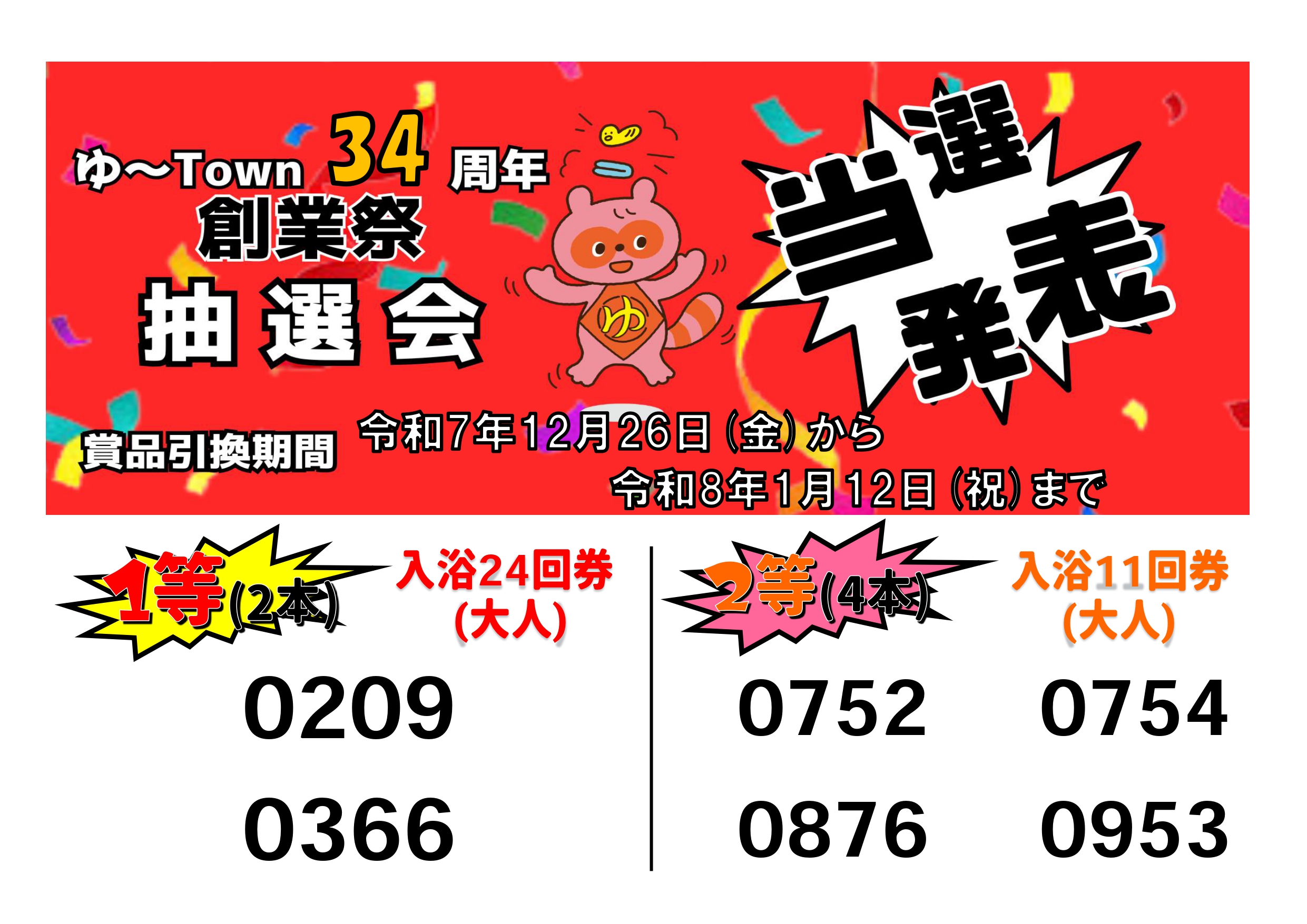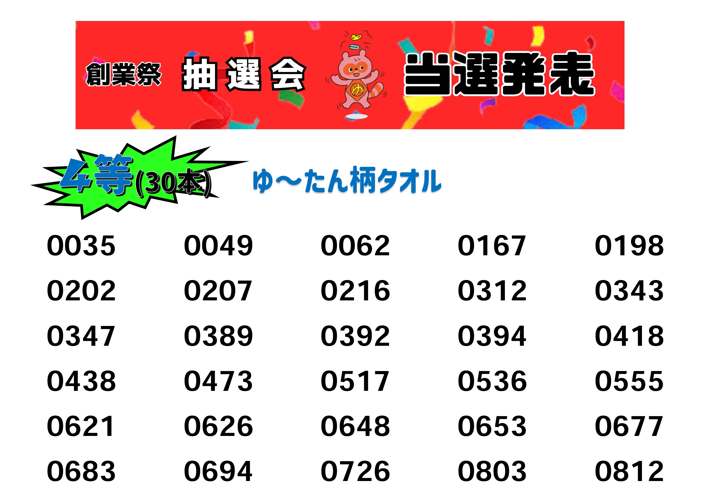 34周年創業祭「抽選券当選番号発表」!!