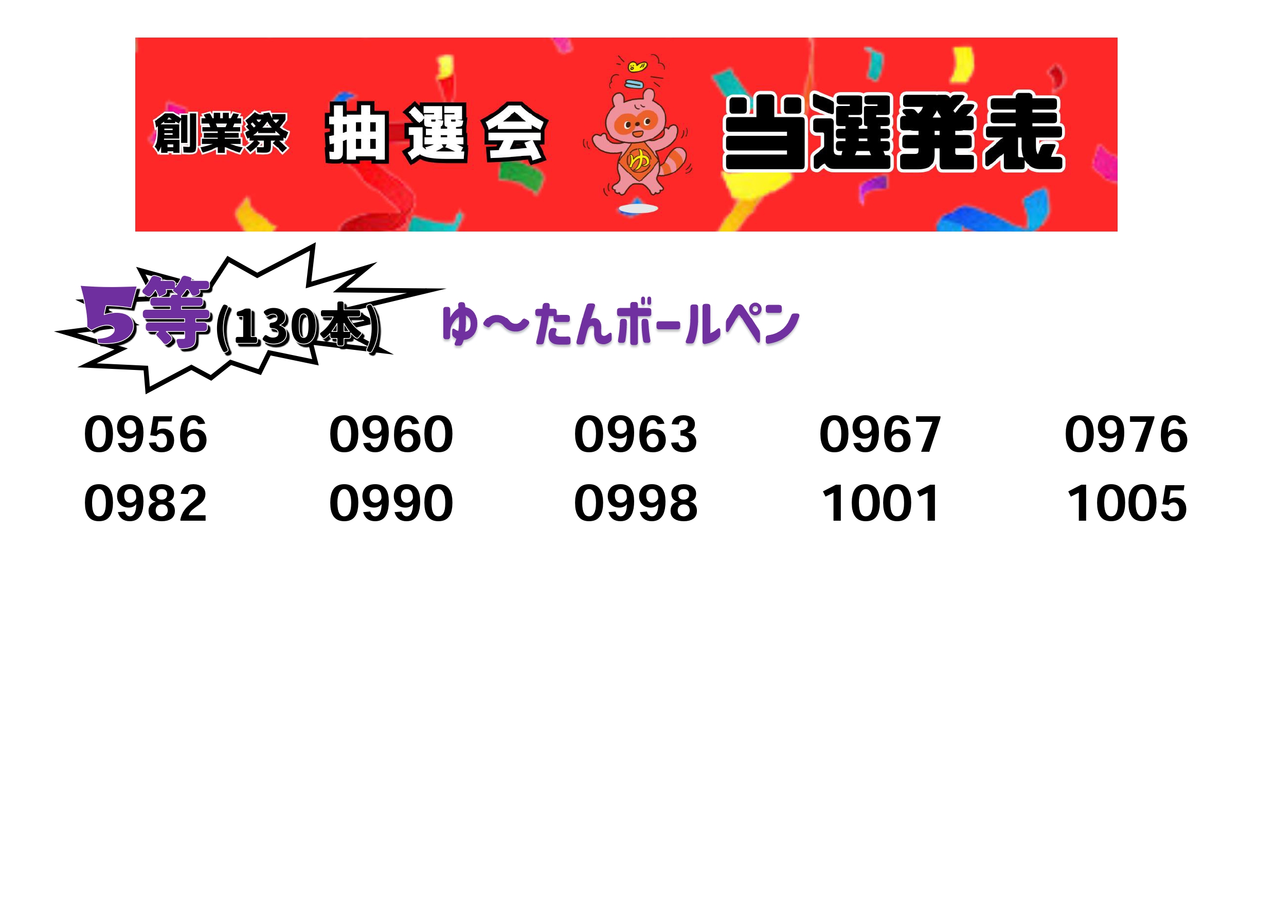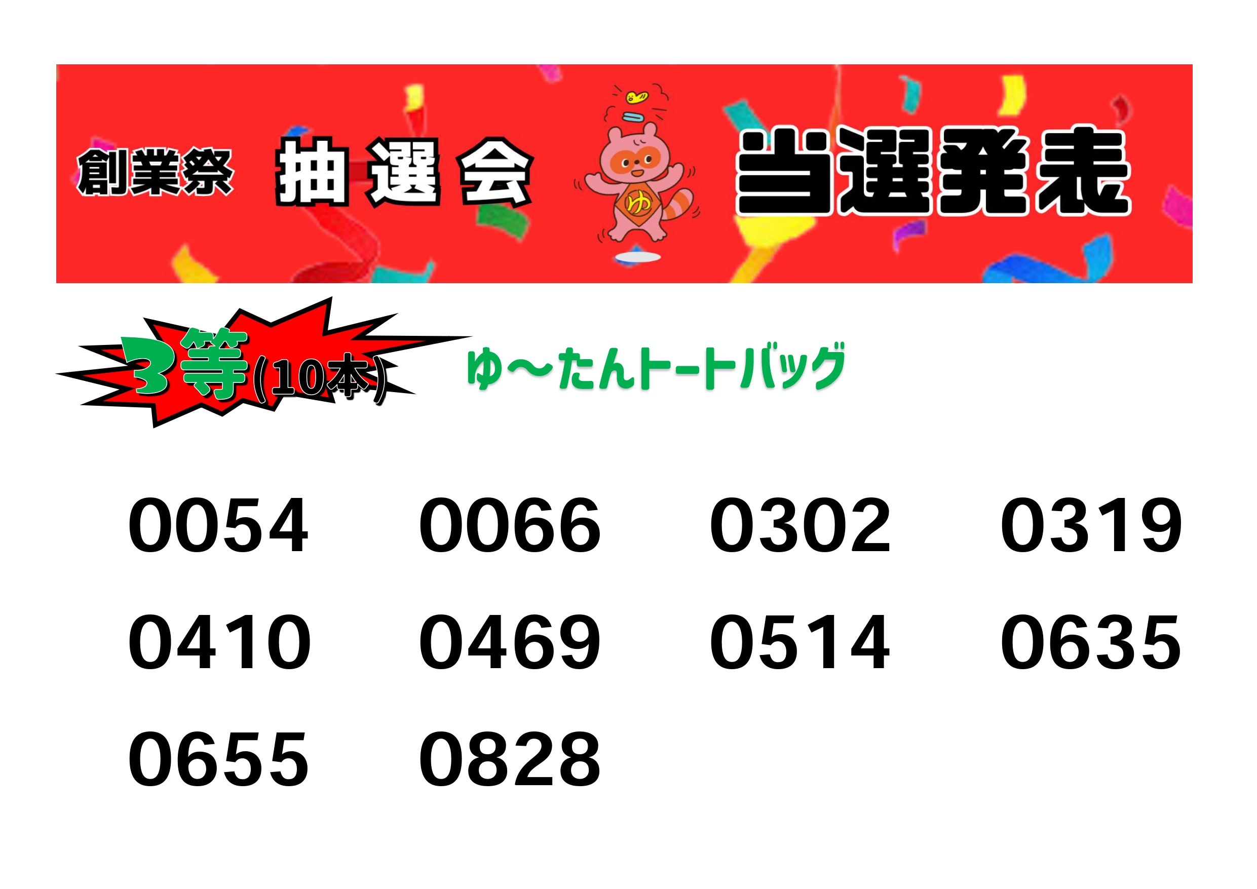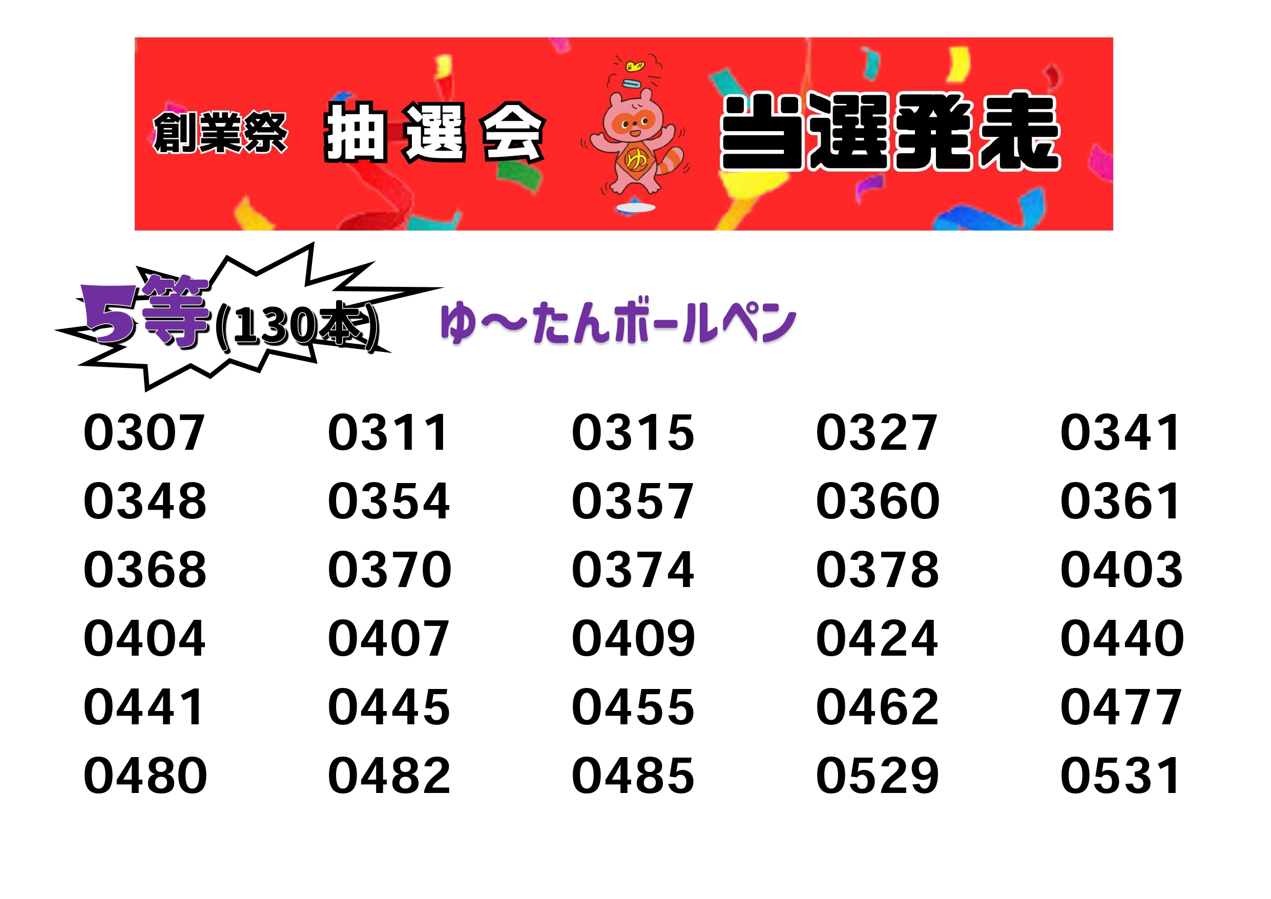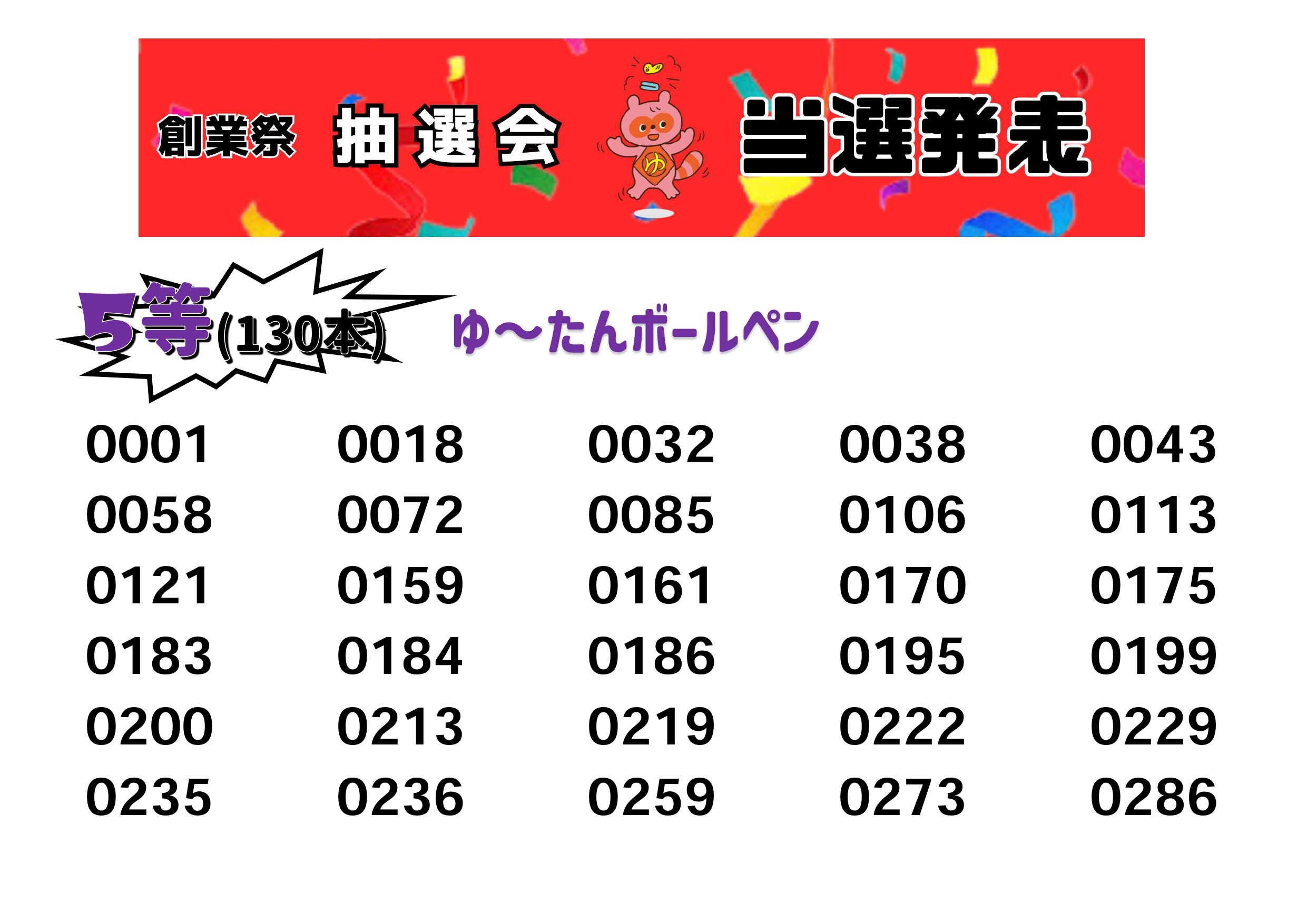 そして厳正なる抽選の結果、当選番号は以下の通りとなりました。抽選券をお持ちの方は是非チェックしてください!!