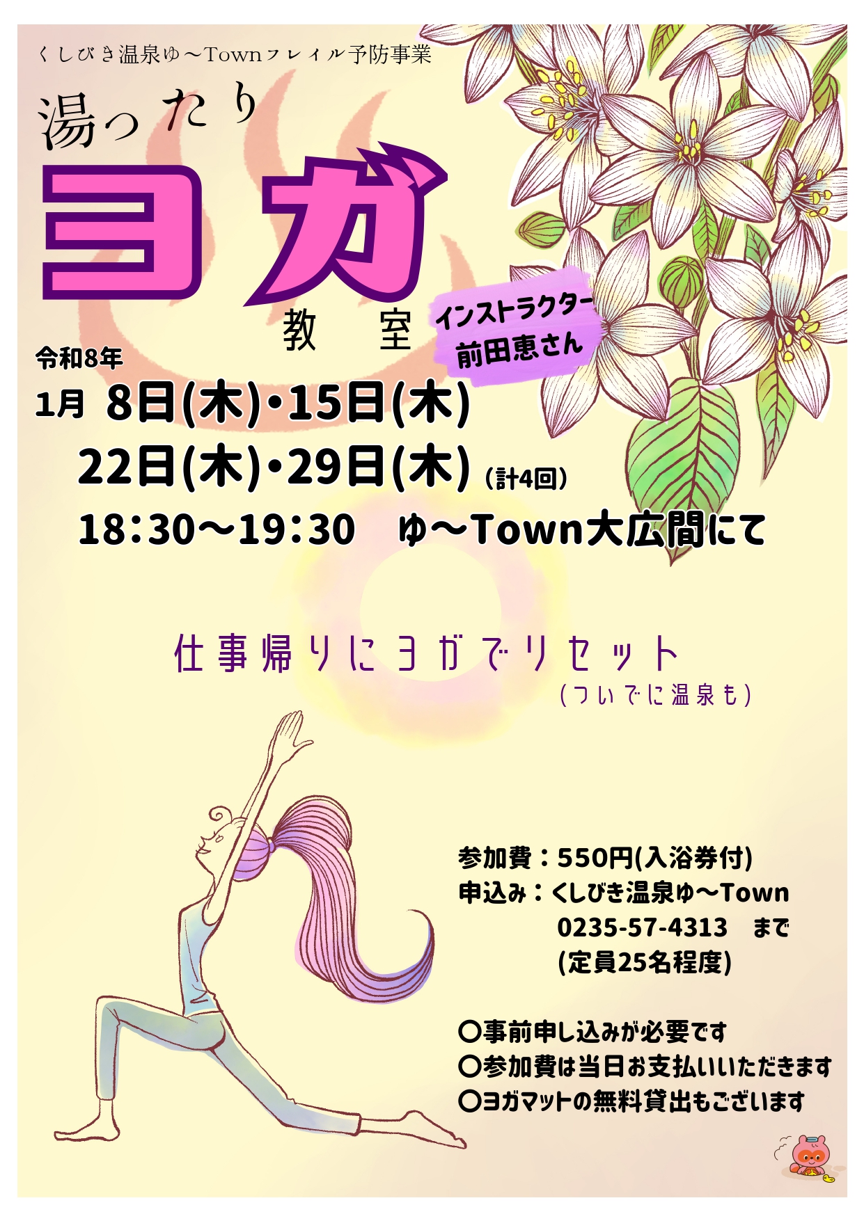 フレイル予防事業「湯ったりヨガ」1月開催告知です!