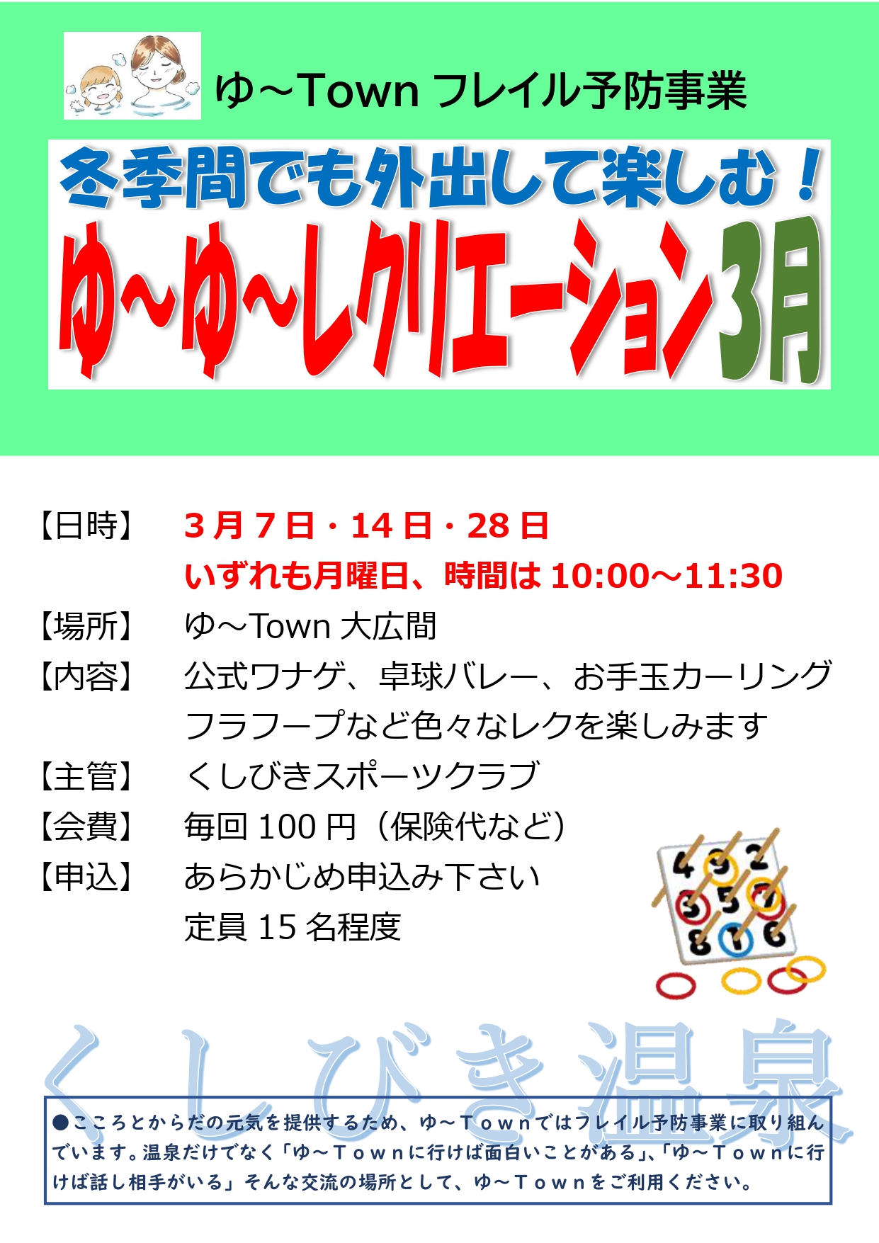 3月ゆ~ゆ~リクリエーション再開のお知らせ