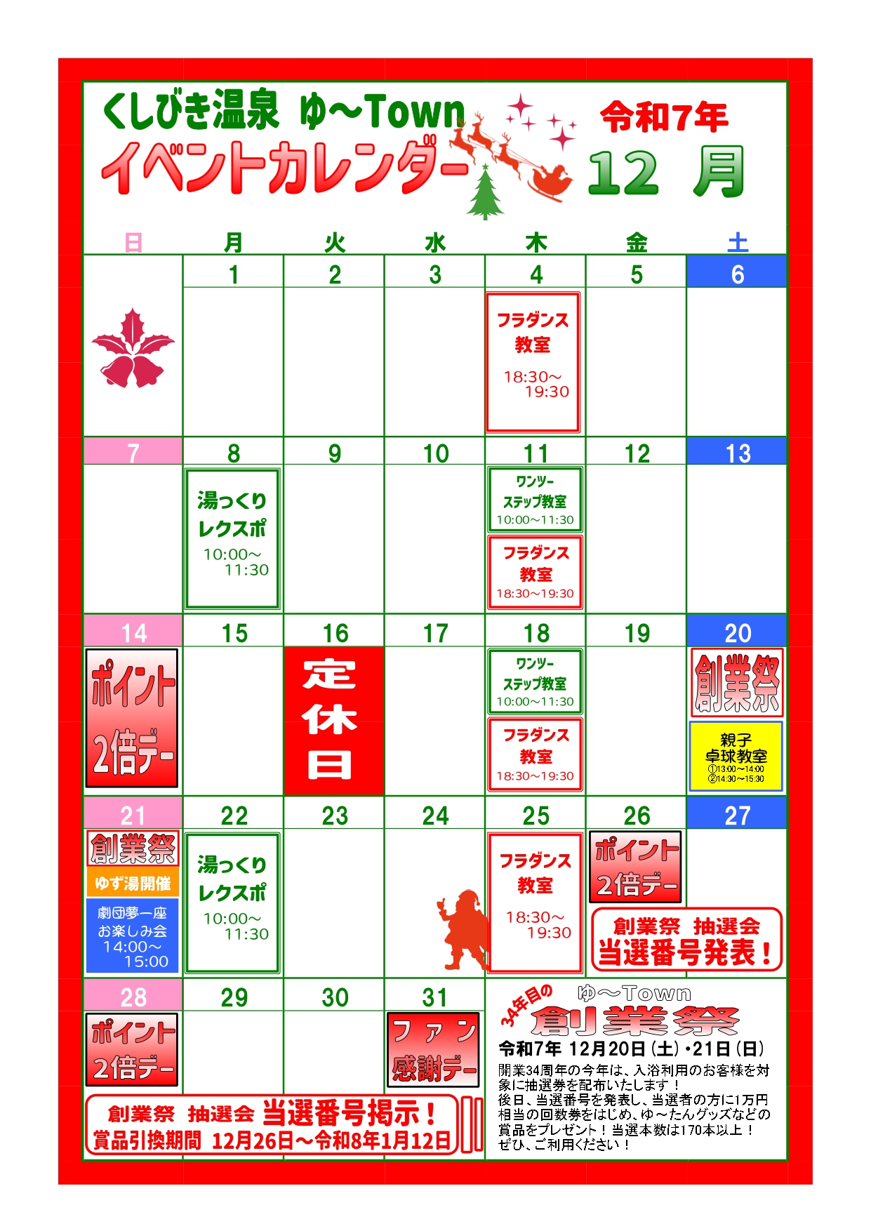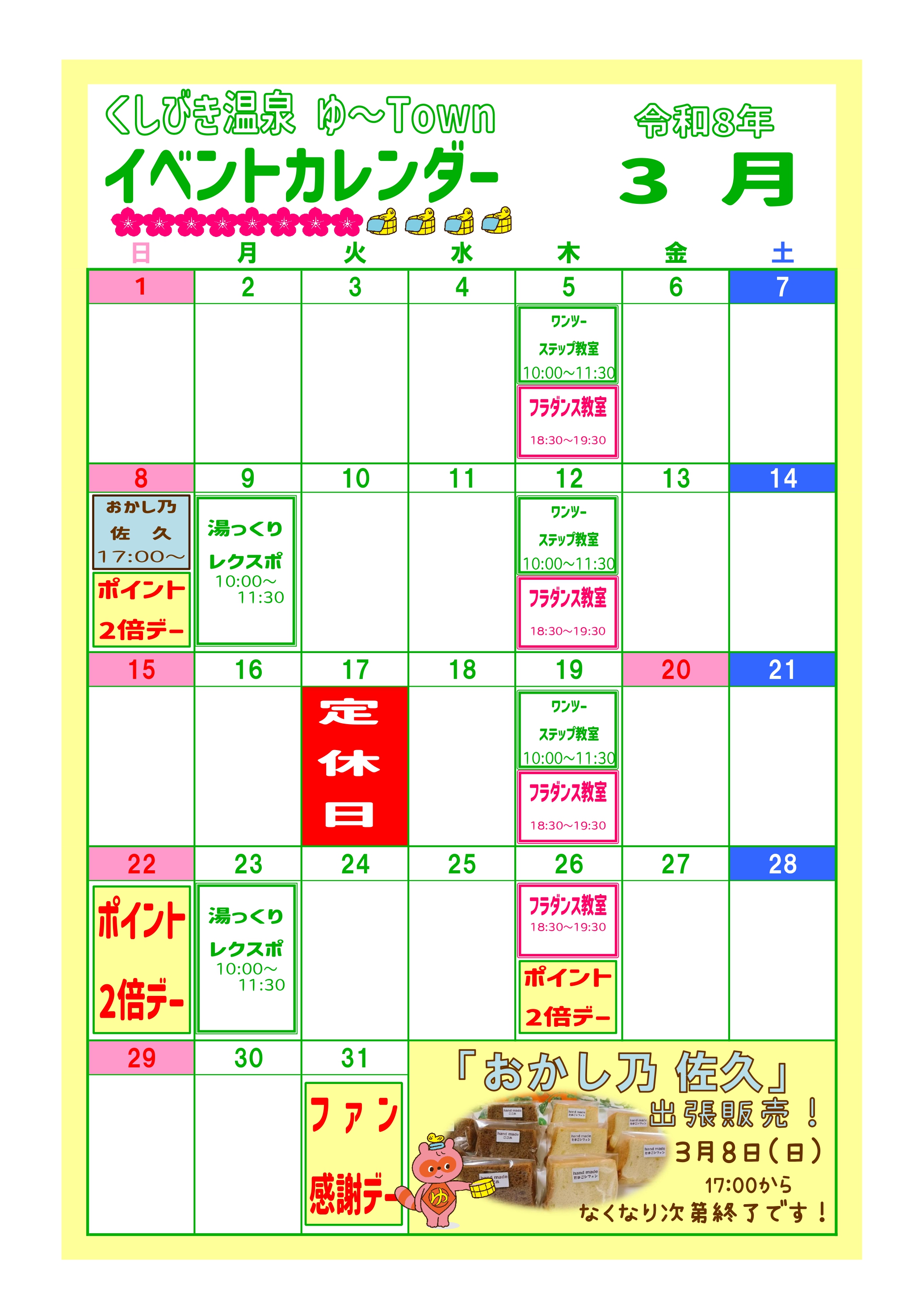 くしびき温泉ゆ~Townイベントカレンダー